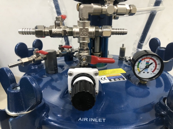 Hơi đưa vào nồi nén sẽ tạo áp lực đẩy sơn ra thông qua đường ống, dẫn tới súng và phun liên tục.